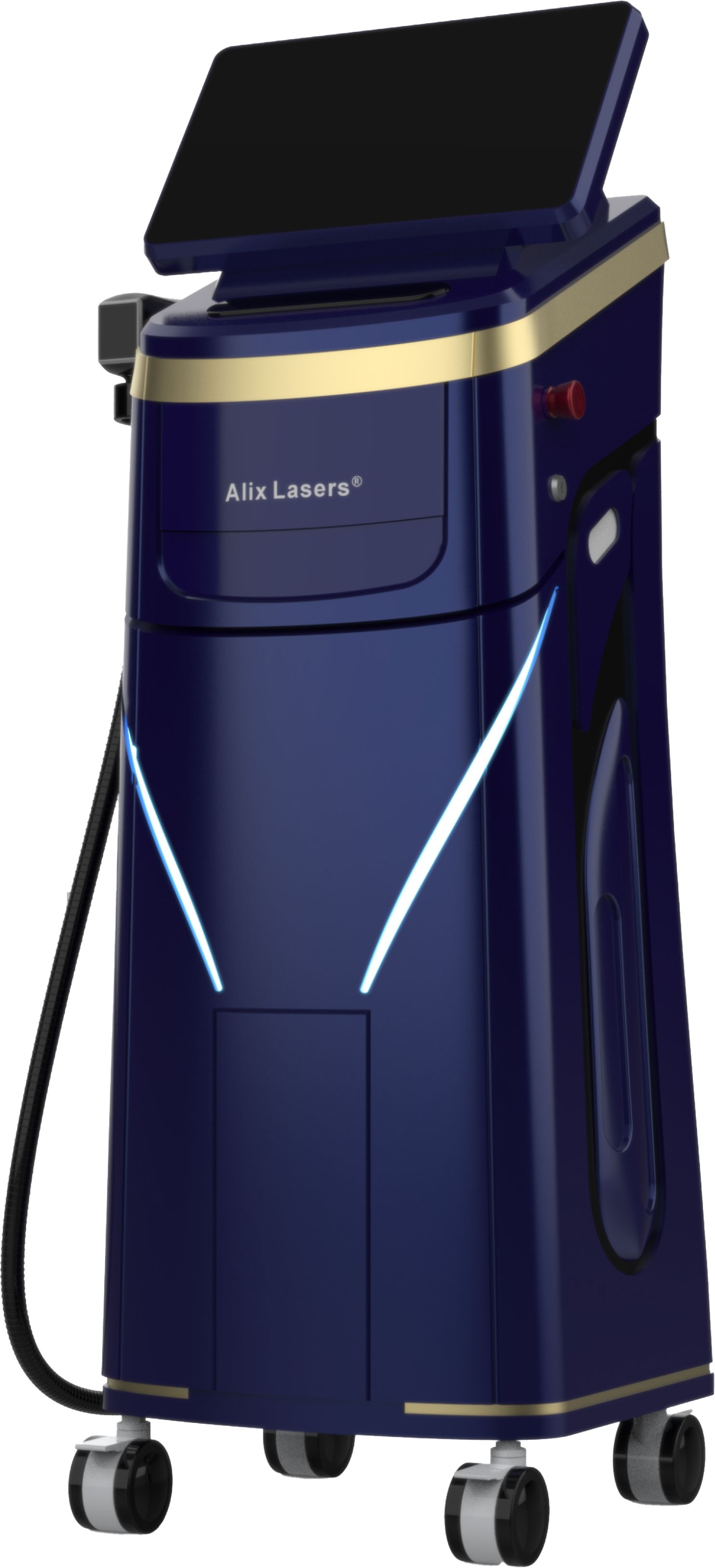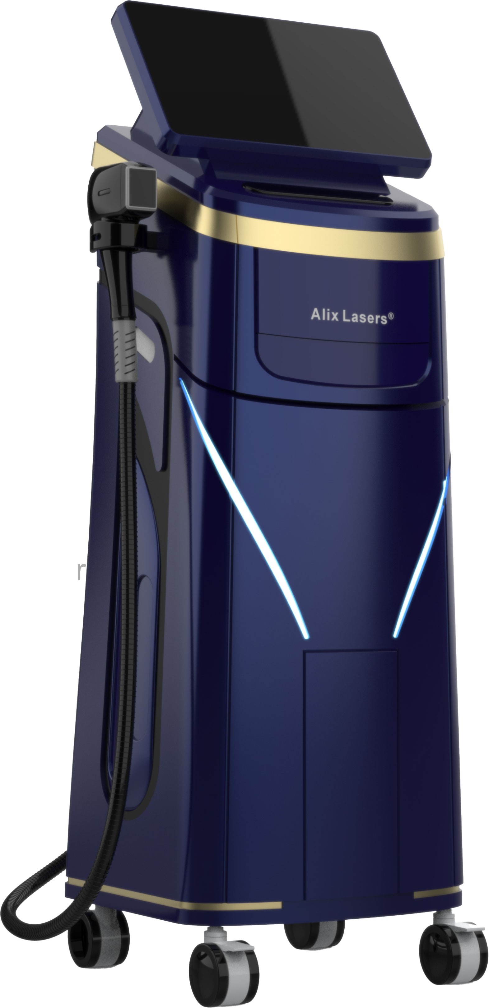 Alix Nexus KI 4 Wellen 755+808+940+1064nm LED Laser Power Bar mit 4 Aufsätzen KI Smart Sensoren und Scanner 2.0 Haarentfernung aller Typen Alix Freezing Kühlsystem optional Alix Freezing sehr leise unter 62 DB Betrieb bis 45 Grad Umgebung möglich Laser Laufleistung Alix Long Life Wifi Fernwartung und Apple Vision Pro Android Betriebssystem mit KI Smart Alix vor Ort Service oder Vision Pro 10 Jahre Garantie mit Ersatzgerät